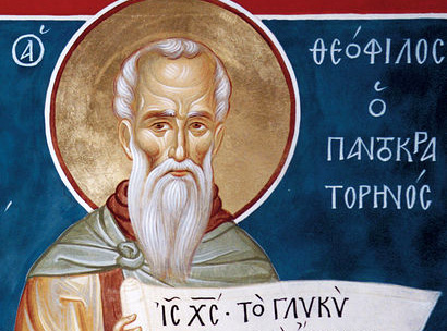 Saint Theophilus the Shedder of holy ointment lived in the end of XV – beginning of XVI century. He was born in Macedonian city of Zikhy to a faithful family. His parents provided to him a worthy education and being youth he became a wonderful copyist. At the same time the boy read and studied the Holy Scripture.