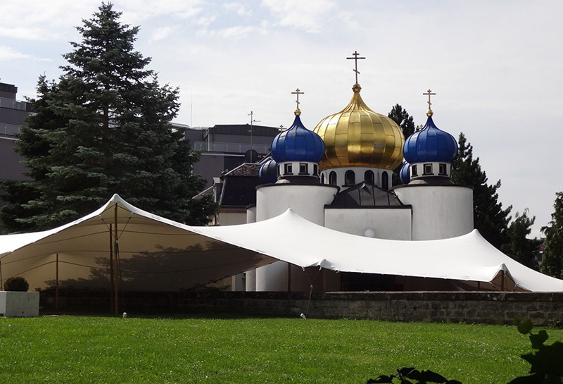 A history of that parish is inextricably linked to the Kursk Root Icon – 40 years ago the Rector archpriest Sergiy Pukh was prayed in a front of this icon and gave the promise to God to build the church if He will grant him health. The Orthodox community of Luxembourg is exists since 1928. For a long time the believers had to pray in temporary church. In 1979 by fr. Sergiy’s labors was laid the foundation of the real church, and after three years the first service have took place in it. Engineers and architects of Luxembourg developed the plan of stronghold-church, which would unite the features of the Grand Duchy, which withstood many sieges and kept its Independence, and Russian Orthodoxy, which contains the traditions of the Church forefathers. The church was painted by fr. Cyprian of the Holy Trinity Monastery, Jordanville.